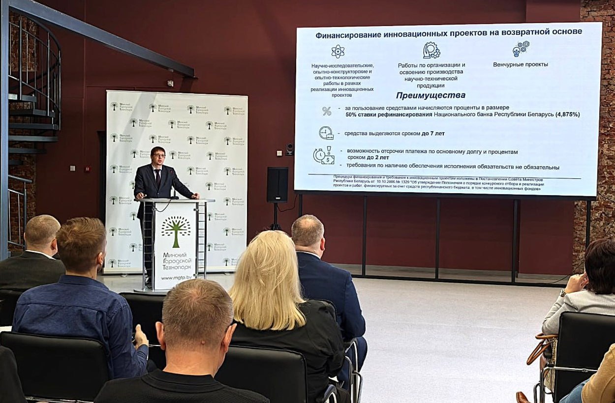 На площадке Минского городского технопарка прошел семинар о мерах государственной поддержки и возможностях получения финансирования для развития инновационных производств.